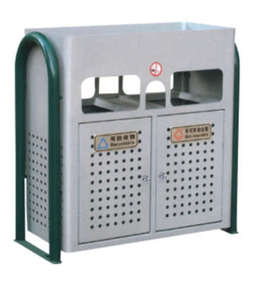 产品型号:XFZ-F179带花盆小区分类钢制垃圾箱