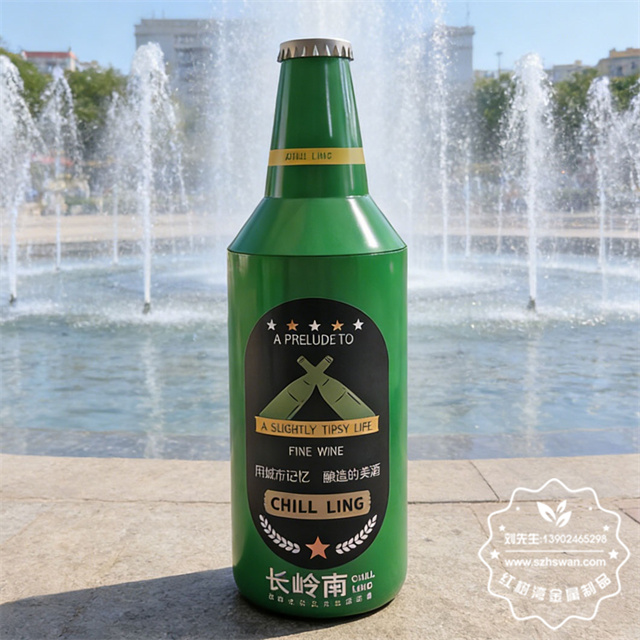 产品型号:XFZ-F535户外啤酒瓶造型镀锌板铁皮垃圾桶