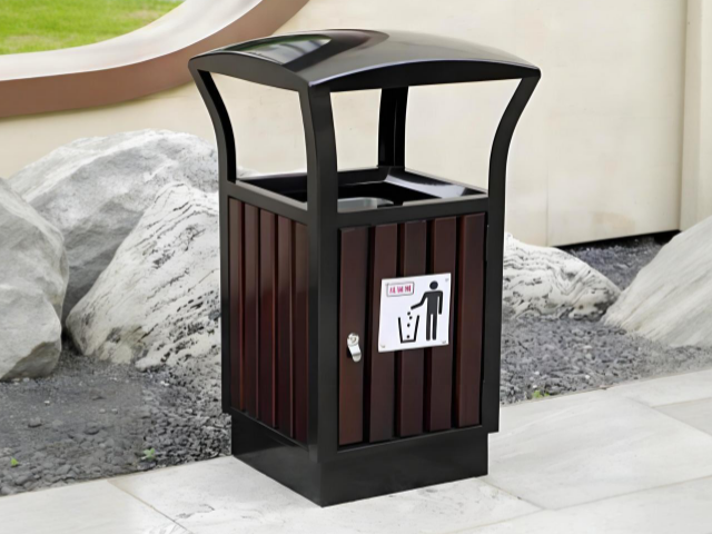 其结构采用镀锌钢板或冷轧钢板作为骨架,经过酸洗、磷化及高温喷塑处理,赋予了垃圾桶抗腐蚀、抗冲击的坚韧体格,能够从容应对户外日晒雨淋与人流磨损 。而桶身镶嵌的防腐木条(如樟子松或山樟木),则柔化了金属的冷峻。这些木材经过脱水、防腐、防虫及喷涂抗紫外线漆等繁琐工艺,既保留了自然温润的触感与纹理,又能保证在潮湿环境中不易变形开裂 。这种“钢”与“木”的和谐共生,恰如现代都市与自然生态的对话,与小蛮腰公园的气质不谋而合 。