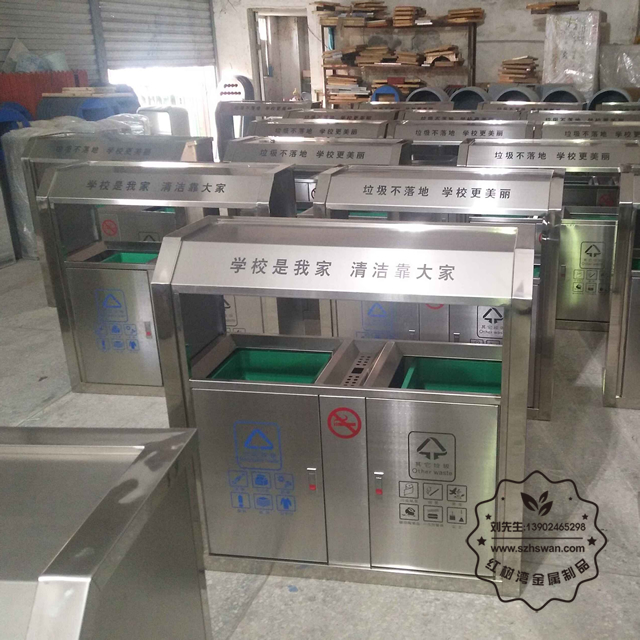 红树湾环卫户外不锈钢垃圾桶生产厂家实图展示: