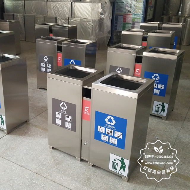 产品材质:室内304不锈钢两分类垃圾桶采用201#,202#,304#优质不锈钢材料模压成型,坚固耐用;内外表面光洁,减少垃圾残留,易于清洁;配置镀锌板内桶,便于垃圾清倒;